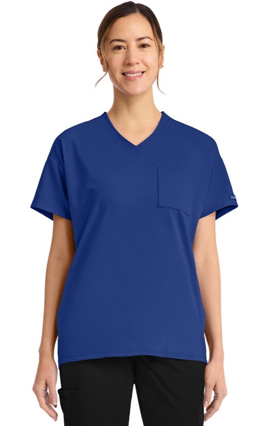 A tuck-in top with all the storage of a traditional v-neck top. Cherokee Achieve's ComfortPro fabric combines with updated styling, plenty of pockets and a high-low hemline to give healthcare professionals a clean and comfortable look.