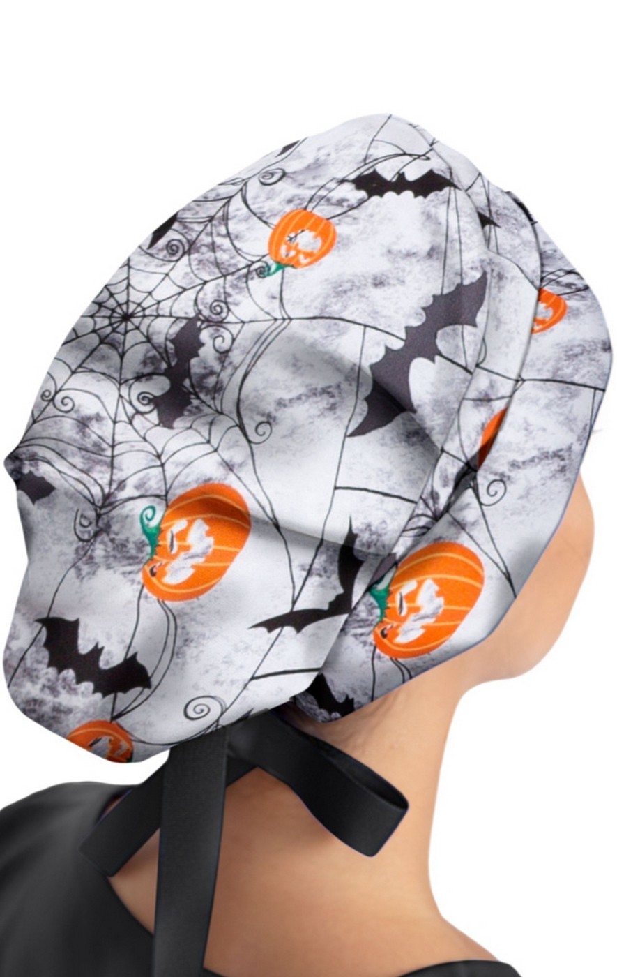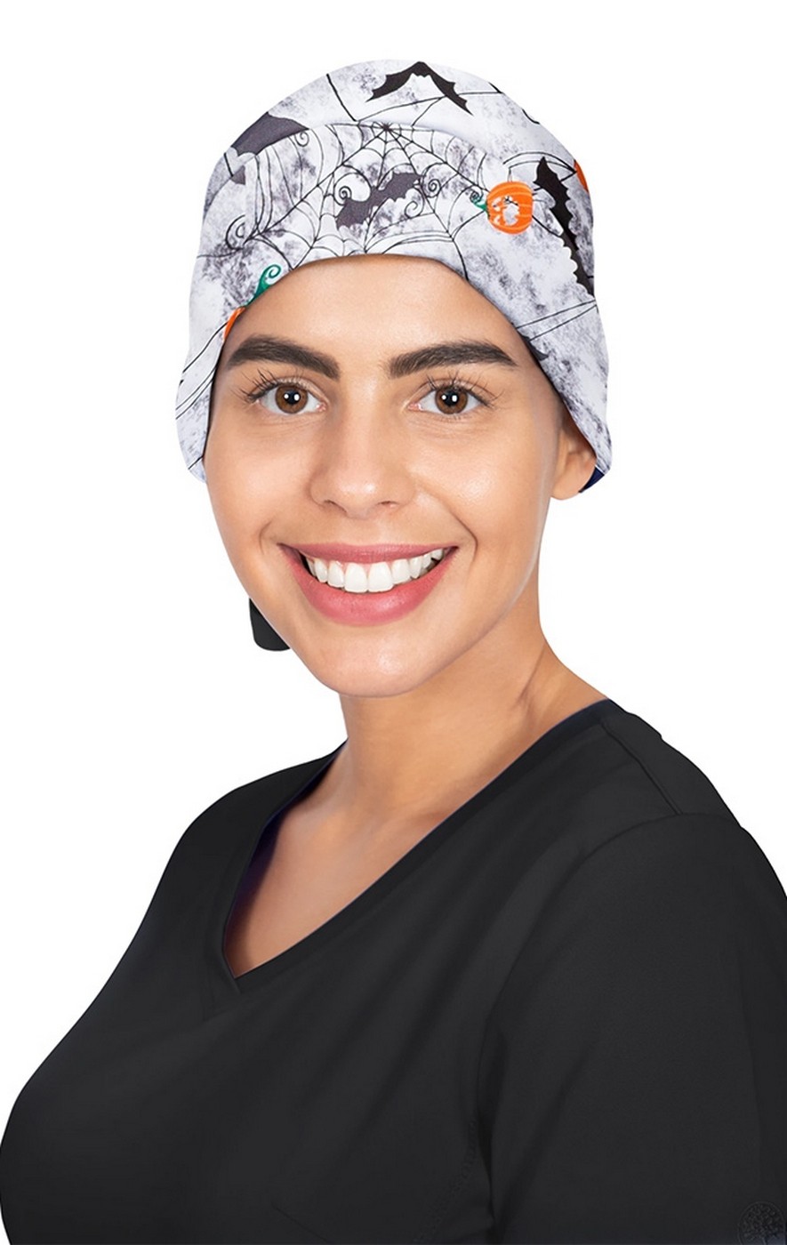 *FINAL SALE 1002PRT-HEV Healing Hands Sloan Halloween Black Bouffant Print Scrub Cap