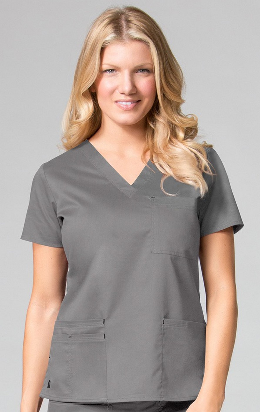 Designed with our signature stretch fabric that is soft to the touch, yet crisp and professional. V-neck with 3 pockets including chest pocket. Triple stitching for added fashion and durability. Three lower pockets including a double smart phone pocket. Contrast bartacks at all pressure points. Inner utility tape at front pocket. Side vents at hem. SIZES: XS - 3XL. LENGTH: 28". FABRIC: 52% Cotton 45% Polyester 3% Spandex.