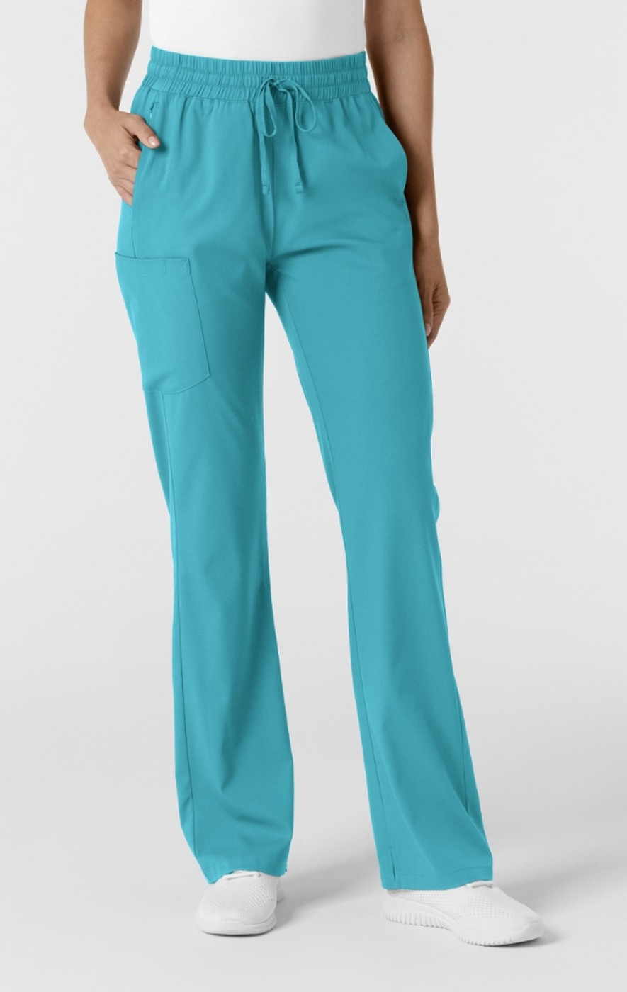 You're the type to bring a sense of fashion to your look at work, and these women's bootcut scrub pants do just that — with all the utility you need. Designed with a gentle flare just below the knees, they deliver the modern, on-trend silhouette you love to wear on days off spent relaxing and having fun. Two pockets on the sides take care of small essentials, and one security pocket keeps valuables close for peace of mind throughout the day. Two pockets at the back offer additional room for tools and essentials, and one cargo pocket includes a bartack stitch to keep your pen in place. For a customized fit with every wear, simply adjust the drawstring on the wide elastic waist, which never digs in and stays comfortable whether you're taking patient calls or moving from room to room. These scrub pants are constructed from a soft, stretchy, sustainably made material, blending the best of comfort and planet-friendly style.
