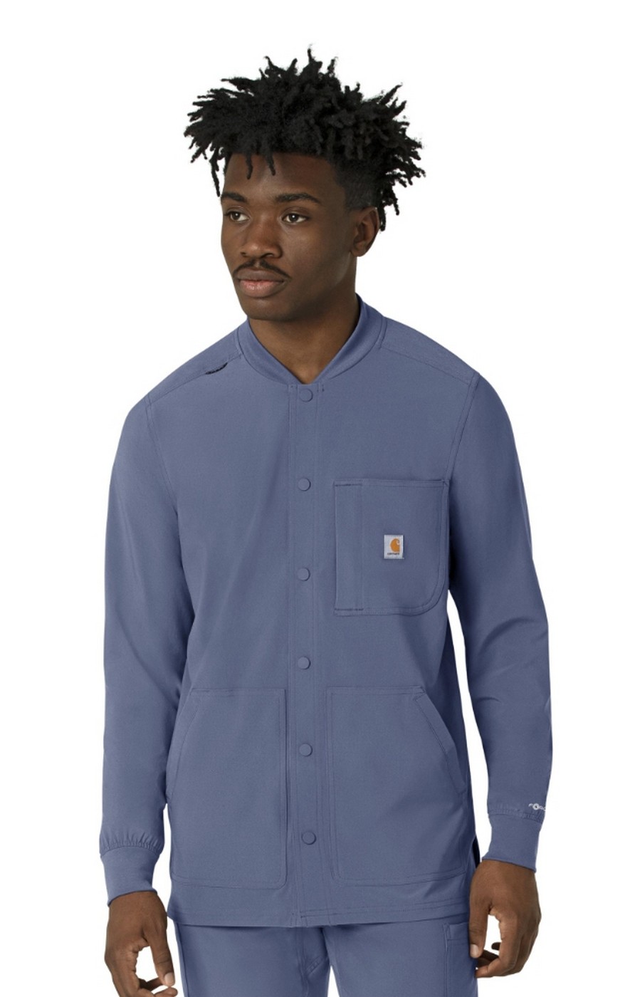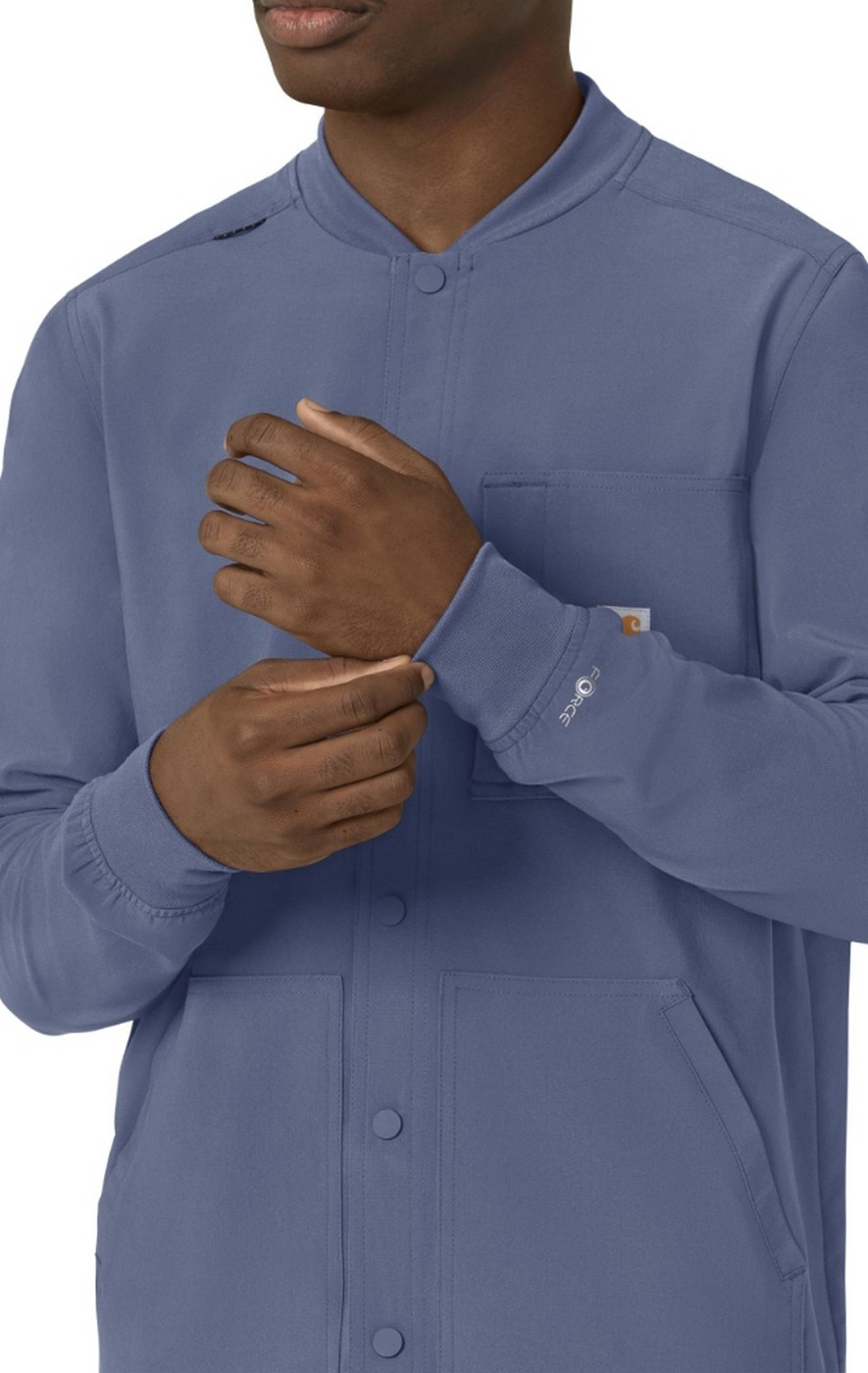 Versatility is the name of your game. You're always ready to switch gears, whether it's completing your own tasks or helping your fellow nurses with theirs. This men's shirt jacket does the same, blending the polished style of a shirt with the coverage of a jacket. It's the perfect layer for days when temperatures fluctuate or the air conditioning varies from room to room. Built for durability, it's made with a stretchy, comfortable fabric that includes micro ripstop to handle the rigors of your daily life at work. A knit collar and snap-button front accent the design for a cozy touch that adds just the right amount of tailoring. Keep everything where you need it with a chest pocket built with a pen slot plus internal loops for your badge or glasses. The lower front pockets are oversized, and there's even a pocket just for your phone for fumble-free access. This shirt jacket is part of our Force Cross-Flex collection, designed to help you excel on every shift. It wicks sweat and dries fast, and it's built to move with Rugged Flex™ stretch technology.