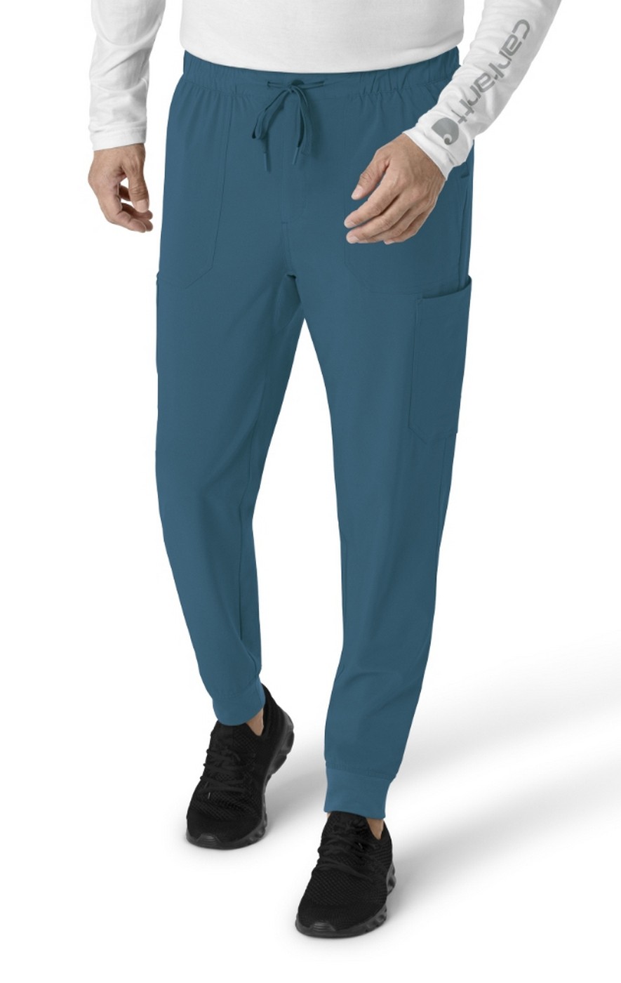 You deserve comfort during every shift because it's what helps you do your best work. Blend the best of off-duty style with on-the-clock utility in these men's jogger scrub pants. They fit like comfortable joggers with a sport-inspired silhouette but include plenty of purposeful pockets — your best assistant as you move from task to task and room to room. Two deep front slash pockets offer storage on the go, while two back pockets zip shut to keep smaller items in place. Cargo pockets take care of the rest. One on the right is built with utility loops to secure items like your glasses or badge. Another on the left is designed with an interior mesh pocket that keeps your phone handy but out of sight and out of the way. Ribbed cuffs taper the profile and let your feet move freely without anything in the way. Adjust the drawstring on the elastic waist for a just-right fit.