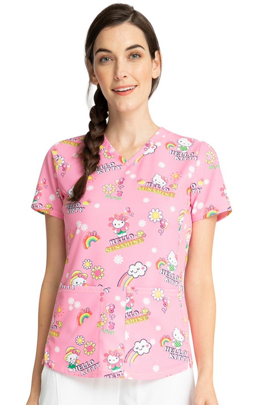 *FINAL SALE TF770 Cherokee Licensed V-Neck Print Top in Hello Kitty Sunshine