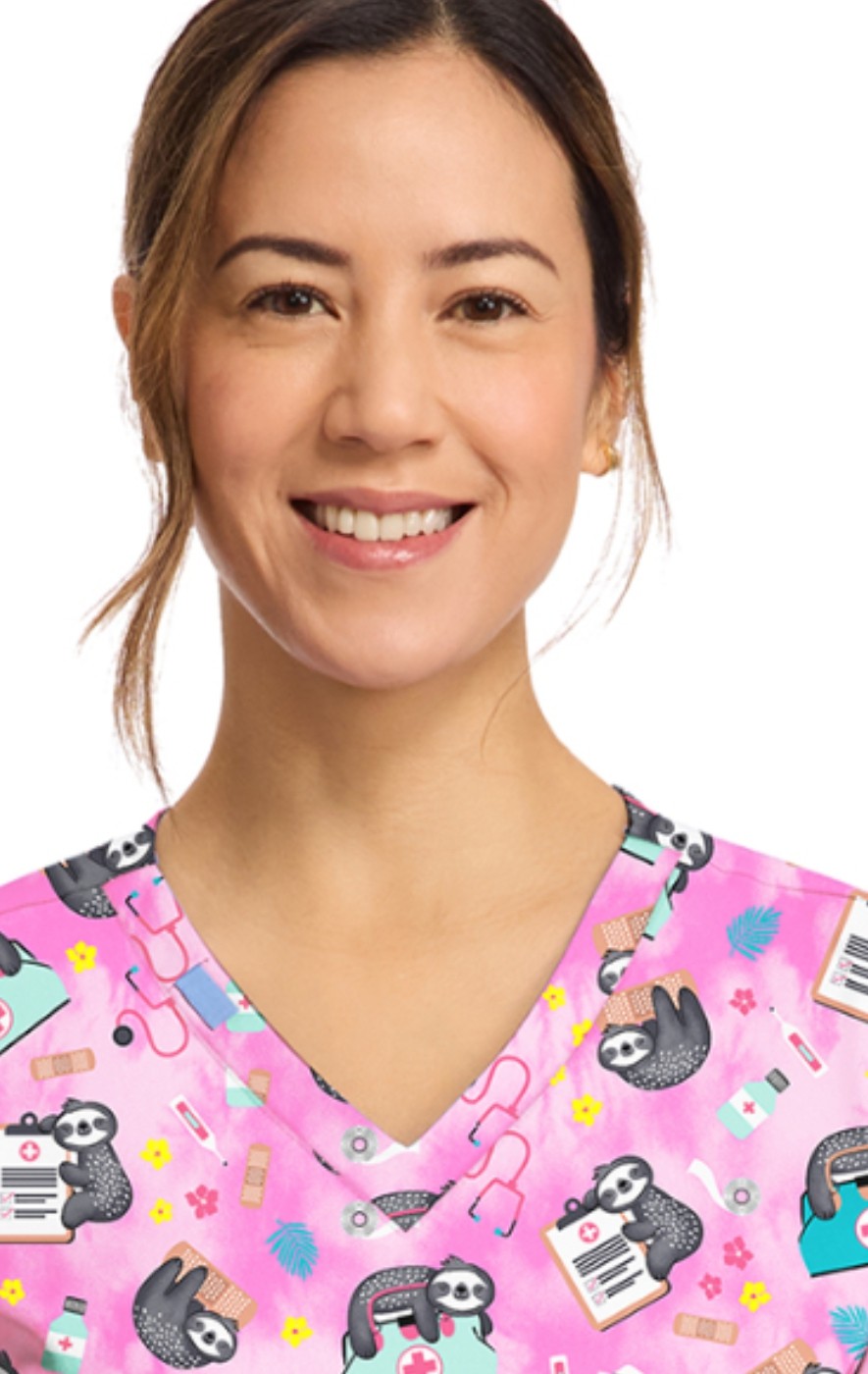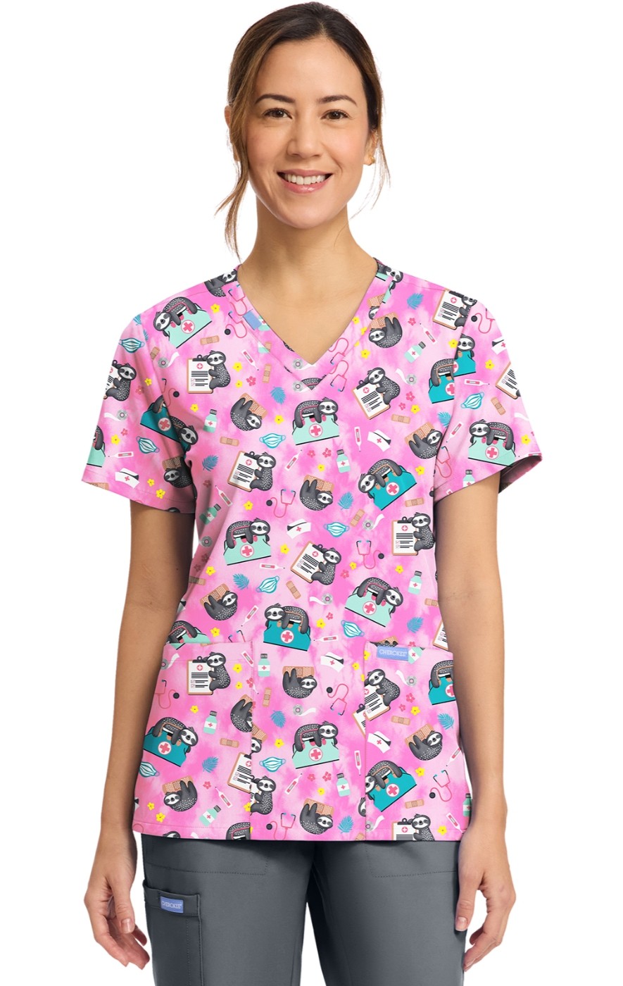 CK856 V-Neck 2 Pocket Print Top by Cherokee - Nurse Sloth