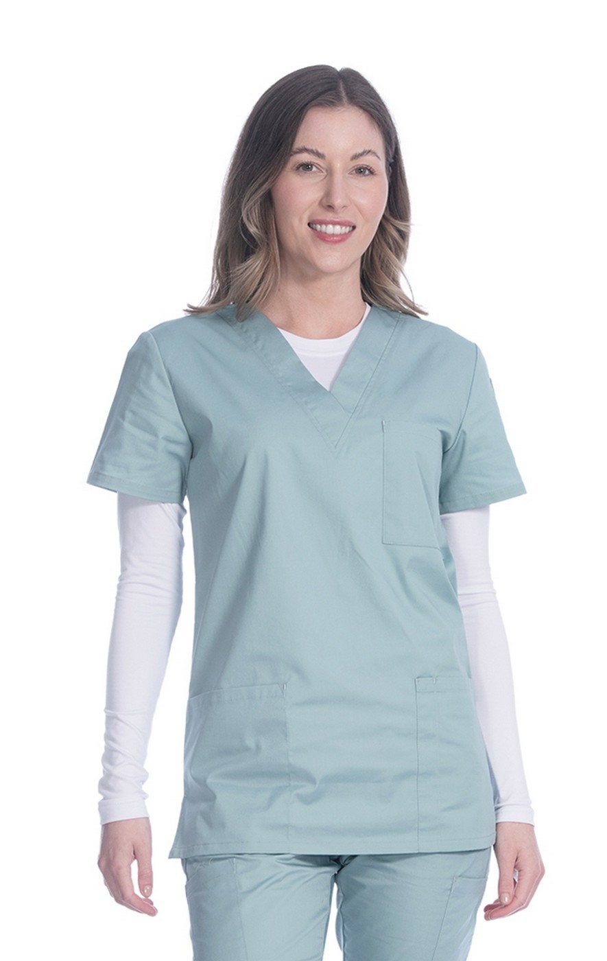 Discover the perfect blend of comfort and class with the Greentown Classix Collection. Tailored for every professional, this V-neck scrub top is crafted from a soft cotton blend, ensuring you feel at ease throughout your shift.