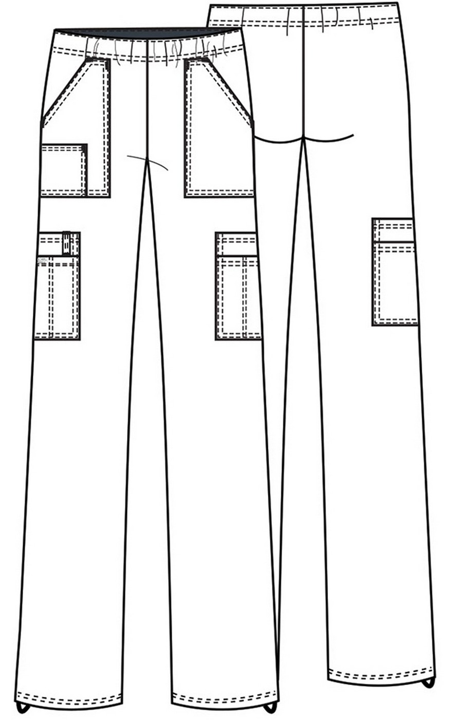 A Modern Classic fit, mid rise, straight leg pant features a soft elastic inside waistband, front patch pockets and an additional small right patch pocket. Also featured are double cargo side pockets with an instrument loop and a bungee cord with a clear toggle at the leg hems for adjustability.