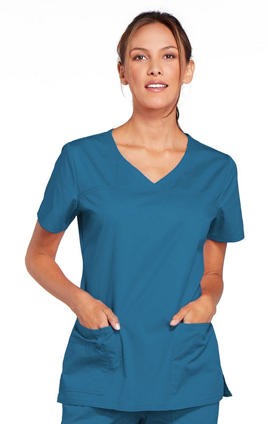 4727 Workwear Core Stretch 3 Pocket V-Neck Top with Back Yoke by Cherokee