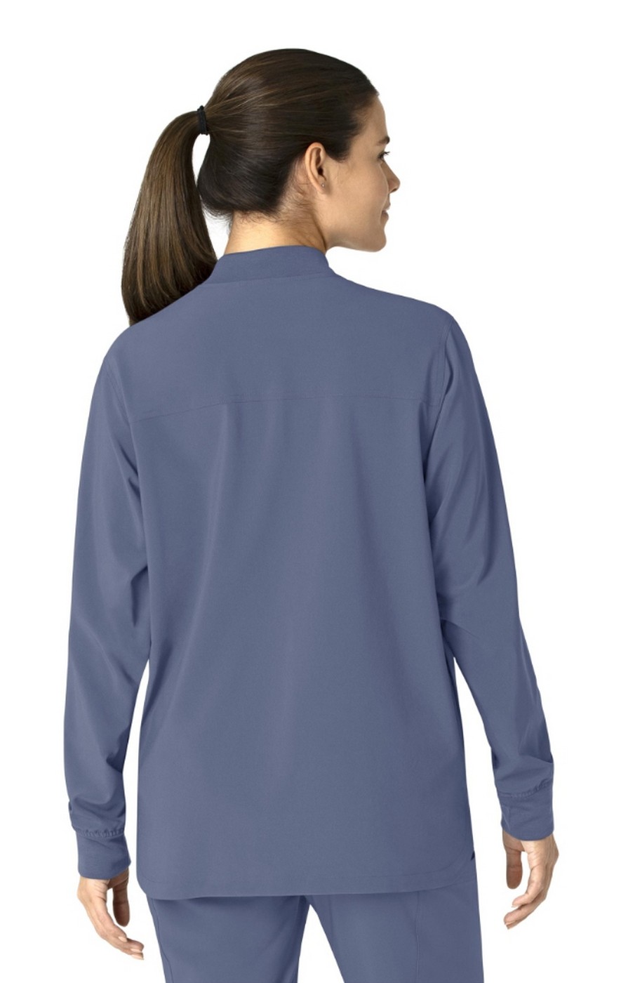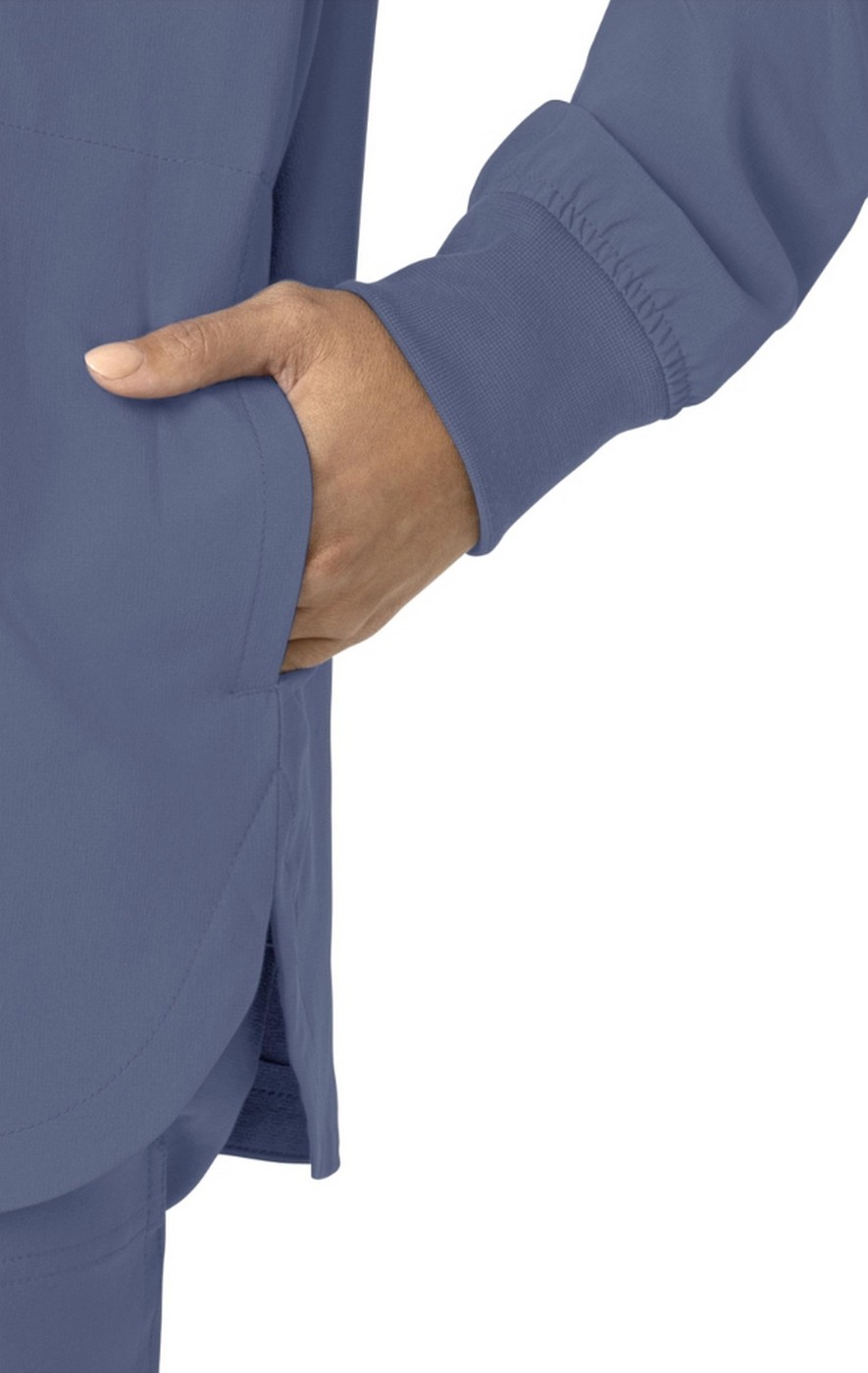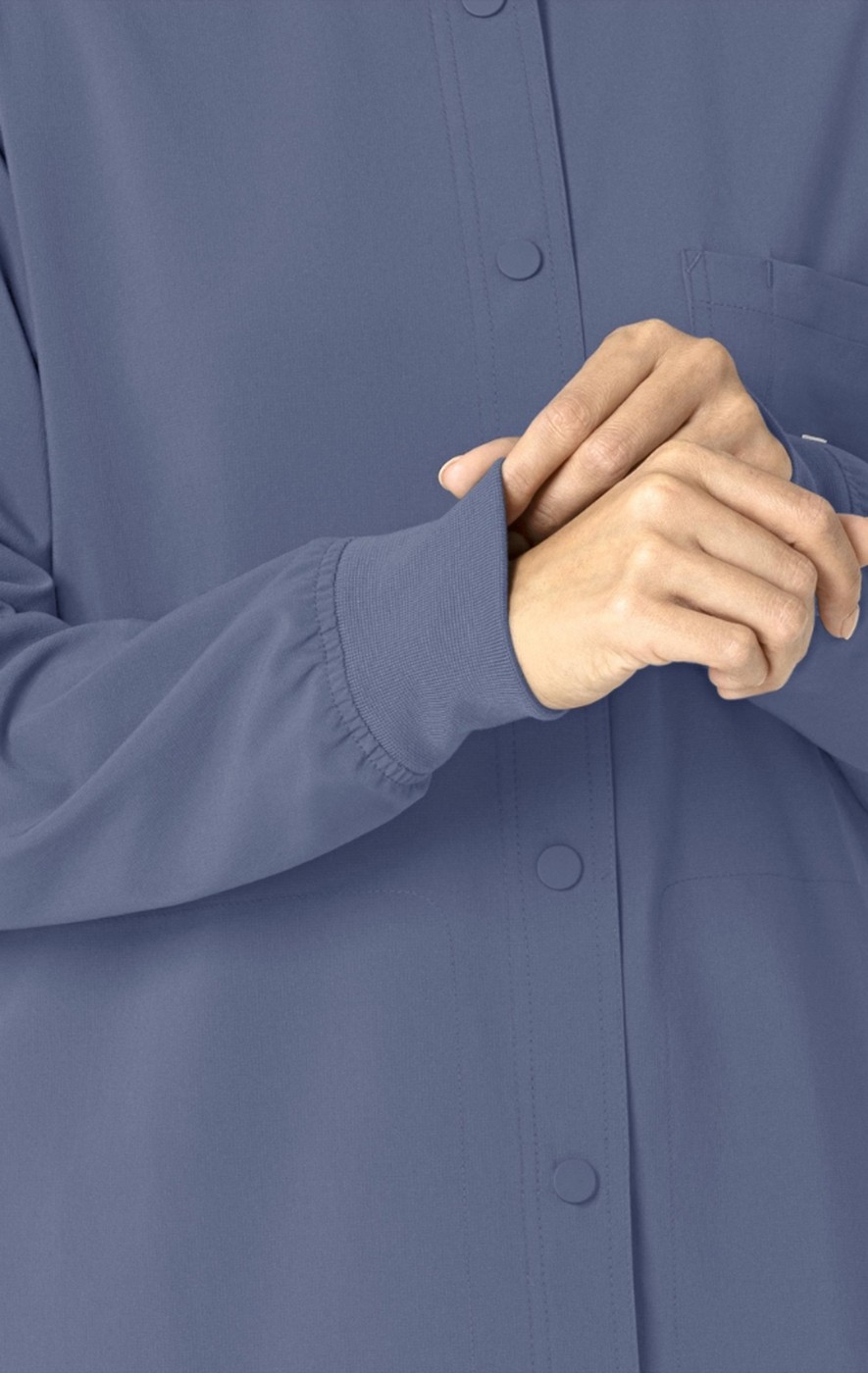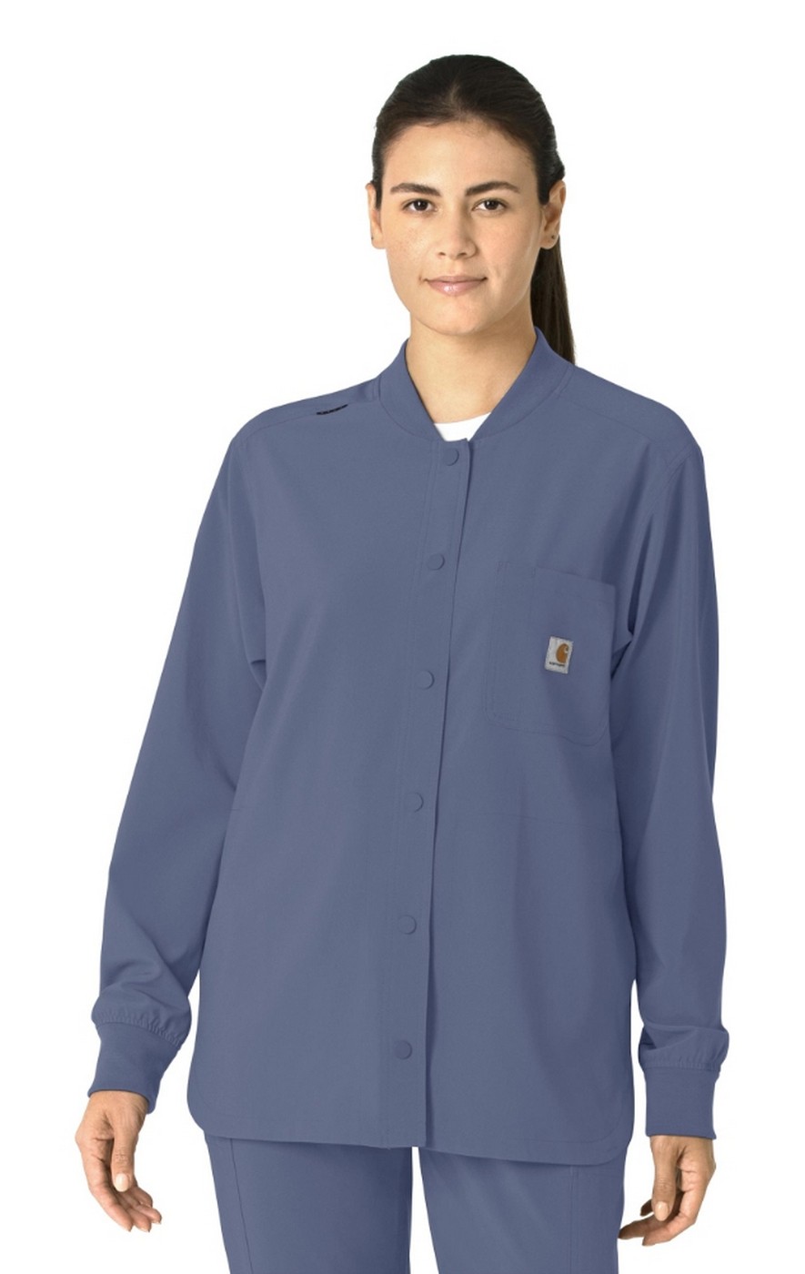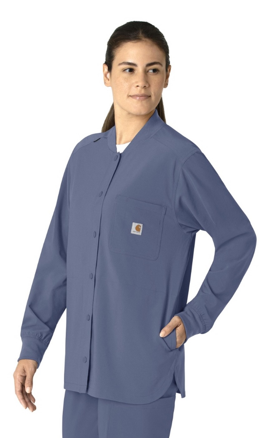 Versatility is the name of your game. You're always ready to switch gears, whether it's completing your own tasks or helping your fellow nurses with theirs. This women's shirt jacket does the same, blending the polished style of a shirt with the coverage of a jacket. It's the perfect layer for days when temperatures fluctuate or the air conditioning varies from room to room. Built for durability, it's made with a stretchy, comfortable fabric that includes micro ripstop to handle the rigors of your daily life at work. A knit collar and snap-button front accent the design for a cozy touch that adds just the right amount of tailoring. Keep everything where you need it with a chest pocket built with a pen slot plus internal loops for your badge or glasses. The lower front pockets are oversized, and there's even a pocket just for your phone for fumble-free access. This shirt jacket is part of our Force Cross-Flex collection, designed to help you excel on every shift. It wicks sweat and dries fast, and it's built to move with Rugged Flex™ stretch technology.