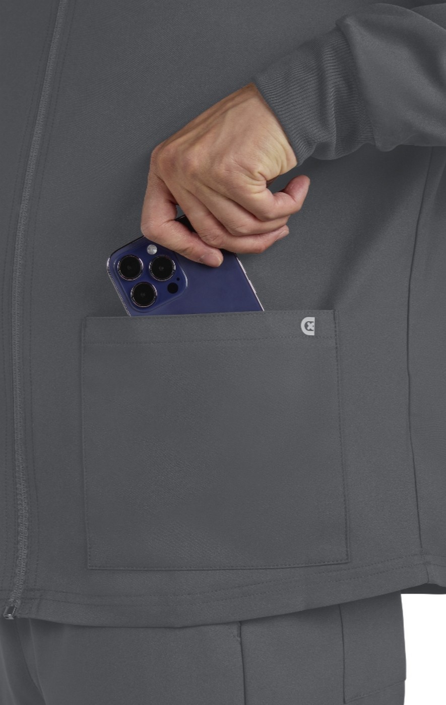Modern, comfortable, and fashionable enough to be perfect on and off the job, you'll be sure to reach for this contemporary fit zip front jacket!