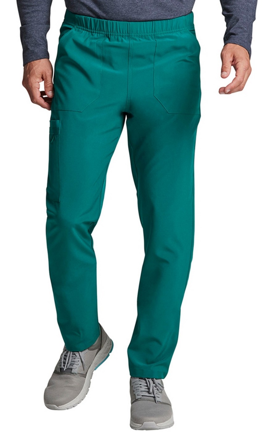 This unisex fit pant has an interior elastic waistband with an inside drawstring. There are five pockets: two front pockets, one cargo pocket with twill tape utility loops plus a bungee badge ID loop, and two back patch pockets.