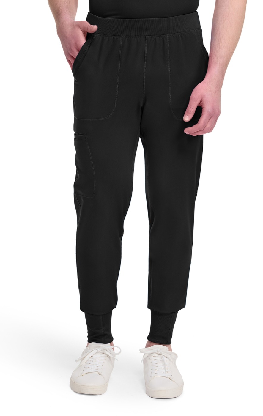 This sporty tapered leg jogger features pull-on styling, with a natural rise, a rib knit elastic waistband with an inside functional drawstring. Additional design details include two front pockets, one back welt pocket, one side welt cargo pocket, rib knit bottom cuffs, and a Dickies tonal label.