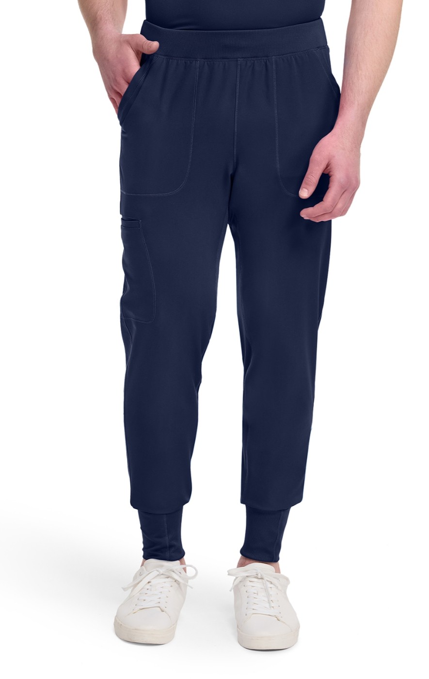 This sporty tapered leg jogger features pull-on styling, with a natural rise, a rib knit elastic waistband with an inside functional drawstring. Additional design details include two front pockets, one back welt pocket, one side welt cargo pocket, rib knit bottom cuffs, and a Dickies tonal label.