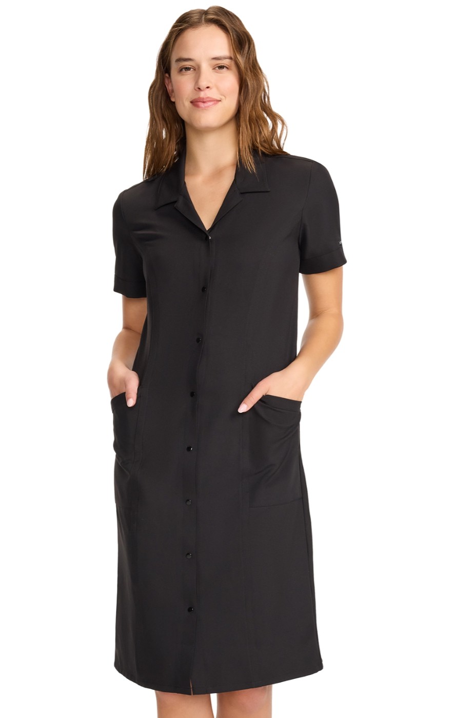 A modern classic with a sophisticated feel, this one-and-done dress is where fashion meets function. An ID bungee loop, roomy side pockets and a polished, professional look makes for a welcome addition to any scrubs wardrobe.