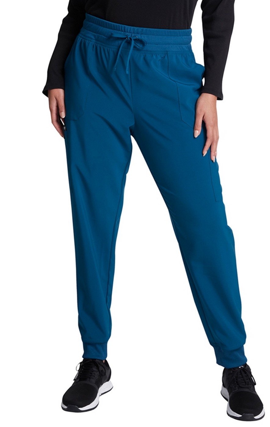 This mid rise jogger has a rib-knit covered elastic waistband with self drawstring. There are six pockets in total: two front patch pockets, two cargo pockets and two back patch pockets. Top of back pockets are finished with reverse hem for subtle design detail. Logo tape instrument loops inside wearer's right cargo pocket. Rib-knit cuffs complete the look.