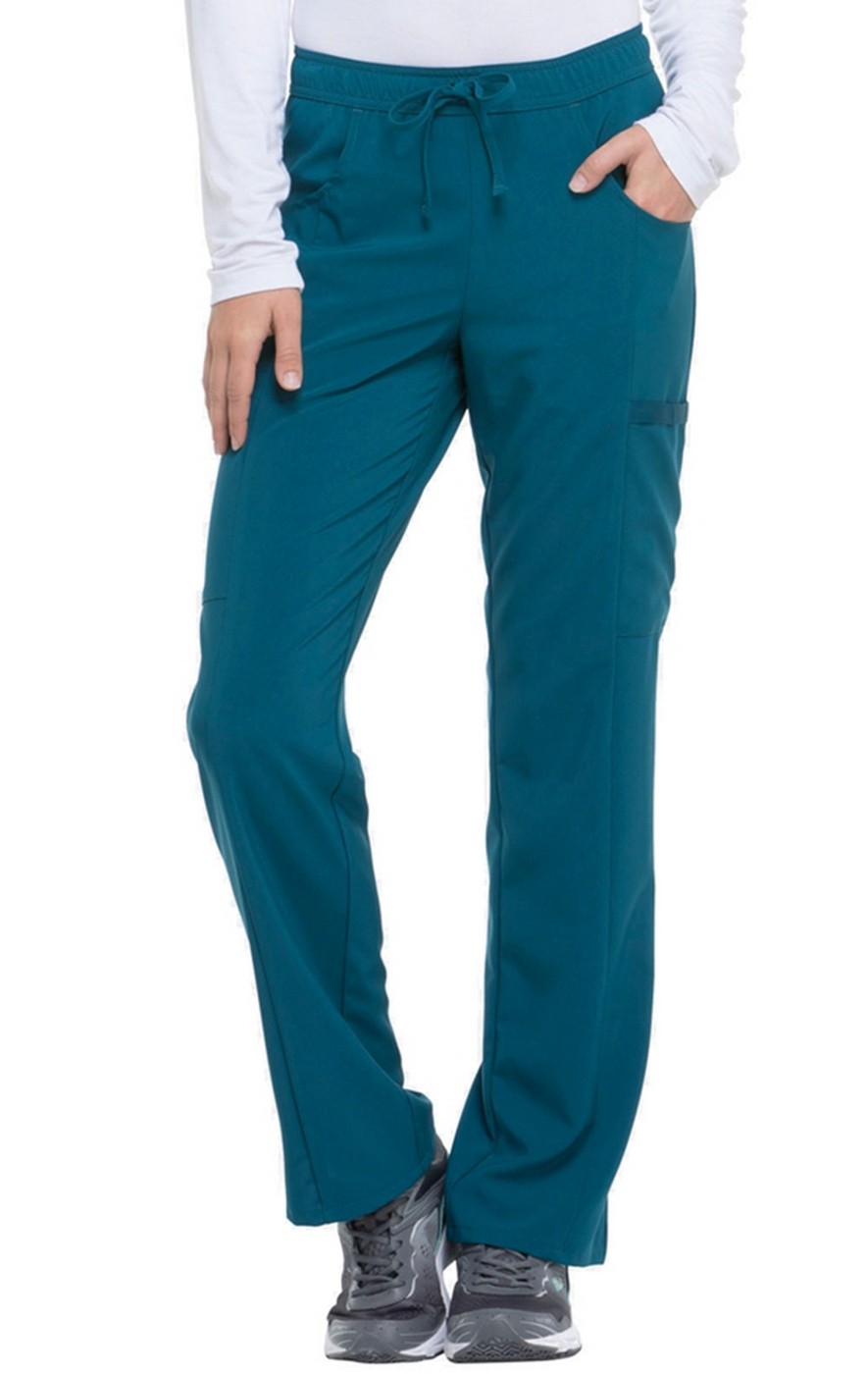 A contemporary fit, mid rise, straight leg pant featuring an all around elastic waistband with a functional drawstring and seven pockets. Two front pockets, two cargo pockets, two back pockets, and a scissor pocket. Also featured is a signature tonal woven label, a utility twill tape and side vents.