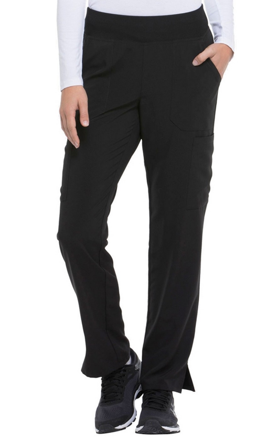 A contemporary fit, natural rise, tapered leg pant features an elastic rib knit waistband with seven pockets. Two front pockets, two cargo pockets, two back pockets, and a scissor pocket. Also featured is a signature tonal woven label, a utility twill tape and side vents.