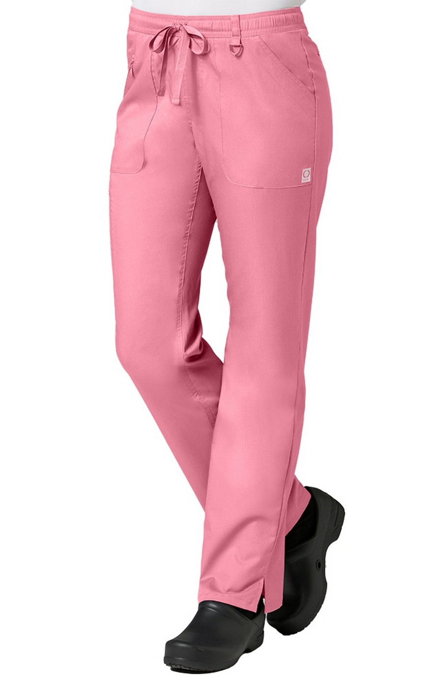 The Maevn EON 7308 cargo scrub pant features a full elastic waistband with a dyed-to-match drawstring. The straight legs and side vents allow extra comfort throughout your shift. For optimal storage, there are 6 pockets total: 2 front slant pockets, 1 interior cell phone pocket and zipper, 1 welt cargo pocket, and 2 back welt pockets. You will also find a triangle ring at the belt loop.