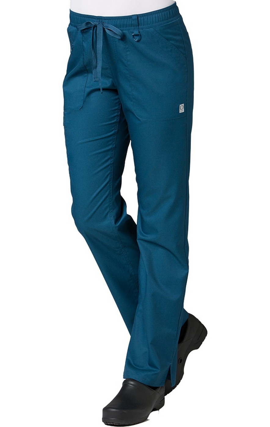 The Maevn EON 7308 cargo scrub pant features a full elastic waistband with a dyed-to-match drawstring. The straight legs and side vents allow extra comfort throughout your shift. For optimal storage, there are 6 pockets total: 2 front slant pockets, 1 interior cell phone pocket and zipper, 1 welt cargo pocket, and 2 back welt pockets. You will also find a triangle ring at the belt loop.