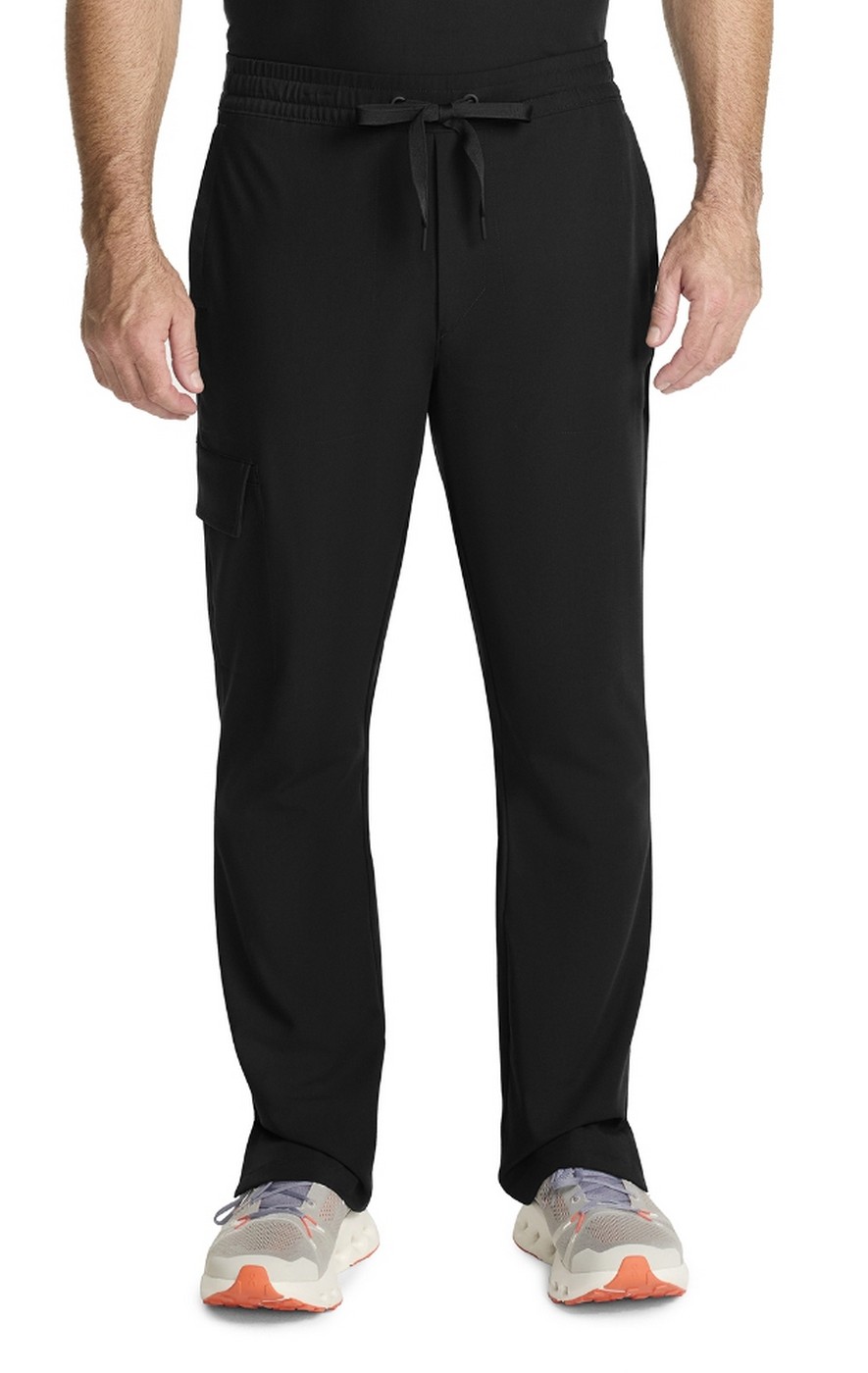 Style and comfort combine for one very wearable pant. The Angelo mid rise pant features an elasticized waistband, webbed drawstring, and zipper fly. There are four pockets for organized storage: two front pockets, one flap cargo pocket on the wearer's right side, and one back welt pocket. Flap cargo pocket converts to a welt pocket for easy entry. Printed pocket bags for added detailing. Curved back yoke for a better fit across the hips. Side vents at hem. The soft four-way stretch fabric includes moisture wicking for added comfort.