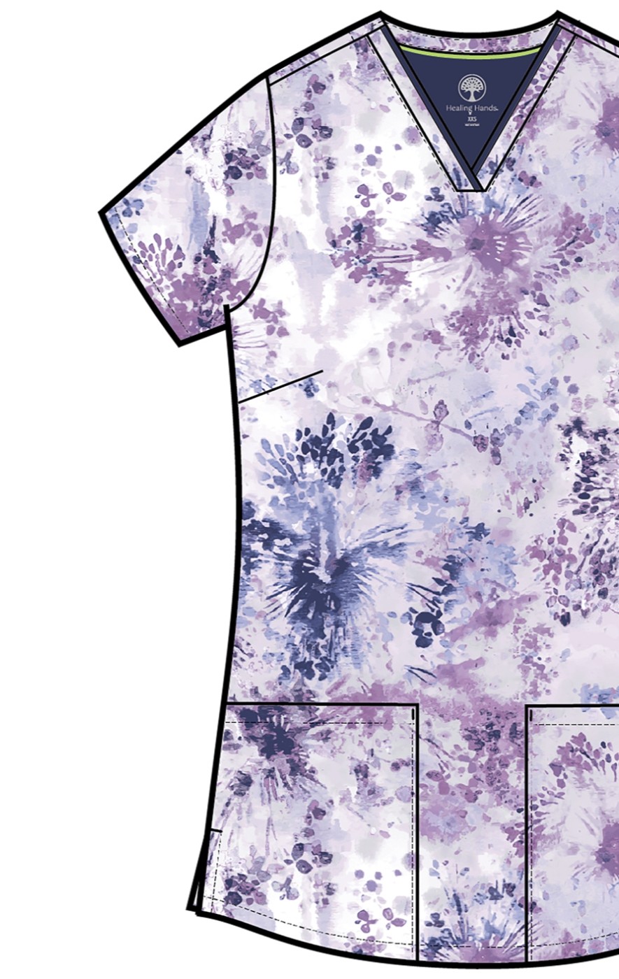 HH910 Healing Hands Amanda Grosgrain Ribbon V-Neck Print Top - Dandelion Burst