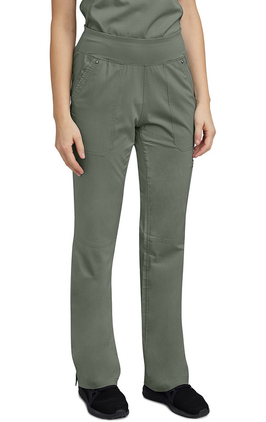 Get ready for a new favorite pant ... the new Tori yoga inspired scrub pants from Healing Hands Purple Label. These stylish, modern fit scrub pants feature a comfy yoga inspired waistband and multiple pockets to meet all of your accessory needs. The Healing Hands Purple Label 9133 Tori modern fit scrub pant features an approximate 2 1/2" stretch knit waist band that sits just below the waist. Store everything you need with the 2 front side pockets, 2 back pockets with tonal grosgrain ribbon detail, and 1 cargo pocket on the left side with grosgrain ribbon and rivet detail. This straight leg pant has vents at the bottom for ease of movement as well as front and back leg seaming for a fashion look.