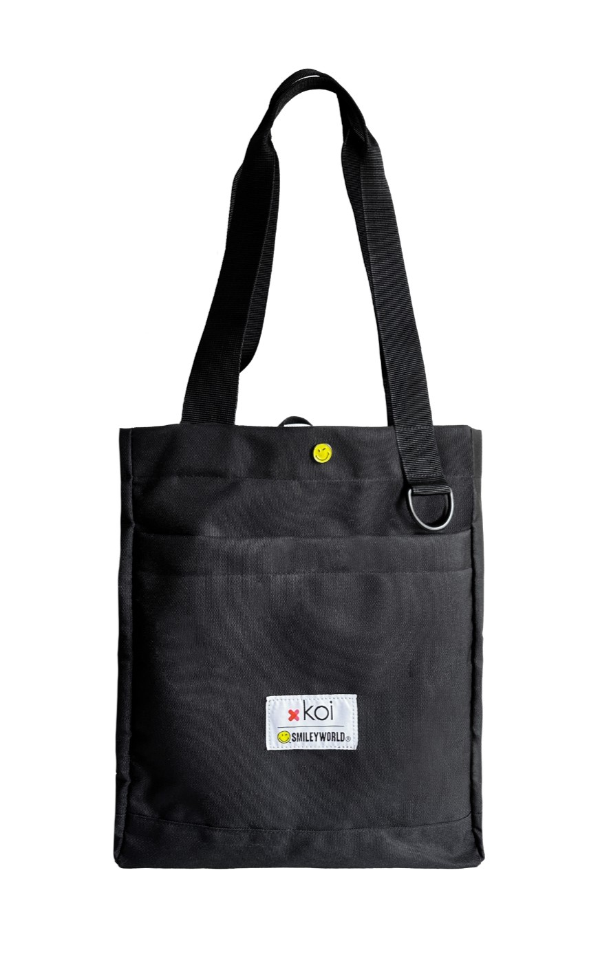 Bring smiles wherever you go with this stylish and fun everyday tote bag. A special collaboration between koi and SmileyWorld.
