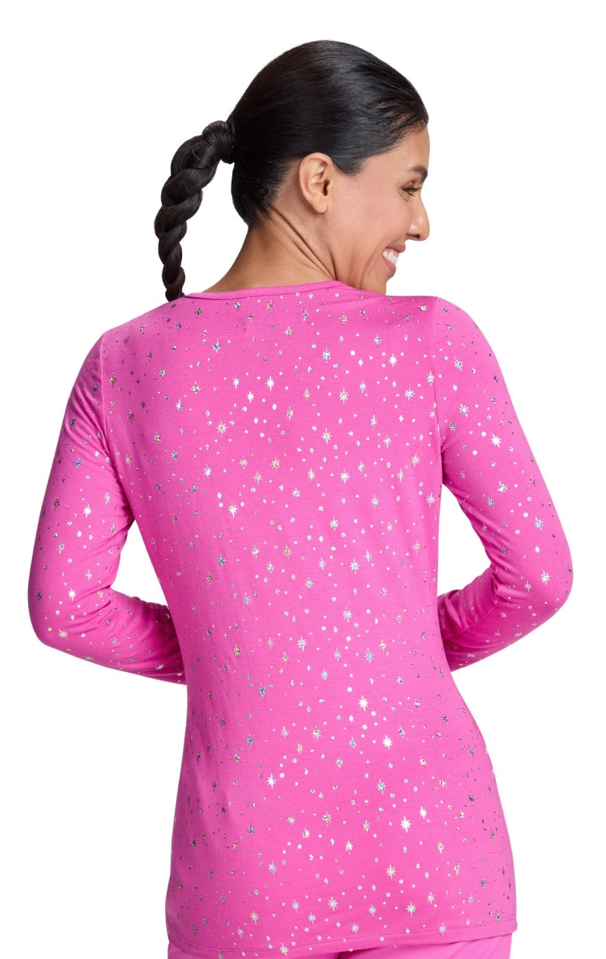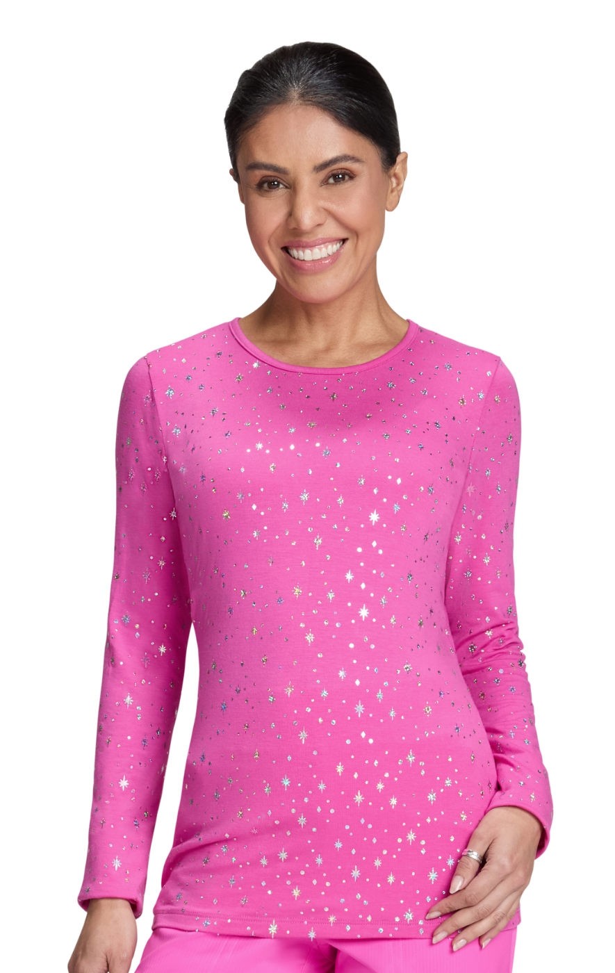 167PR Tessa Long Sleeve Underscrub Tee by koi - Hibiscus Pink Twinkle Pattern
