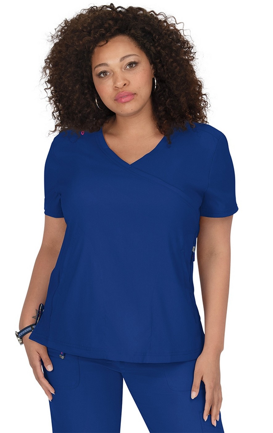 koi Lite's best selling lightweight and durable mock-wrap top with a slim fit and performance stretch. Easy wash and wear moisture wicking fabric to keep you cool and dry.