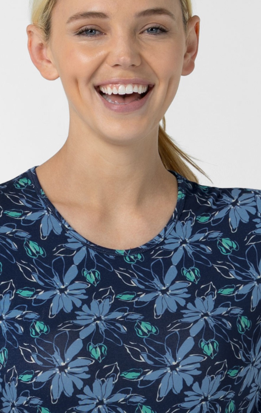 2409 Wink Layers Silky Long Sleeve Print Top - Beachy Blooms Navy