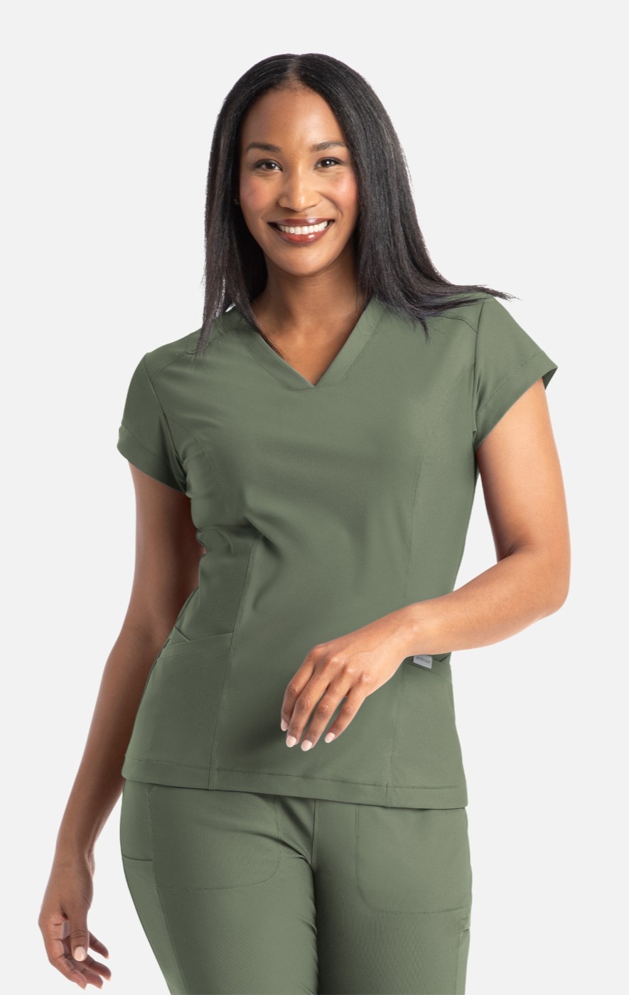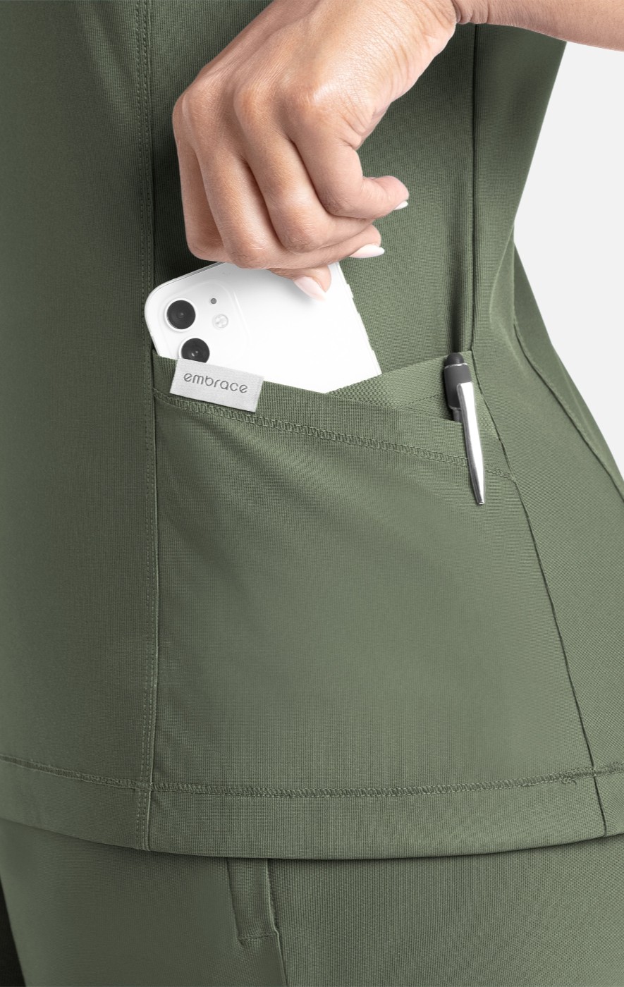 2501 Embrace Zoe Banded V-Neck 4 Pocket Top by Maevn
