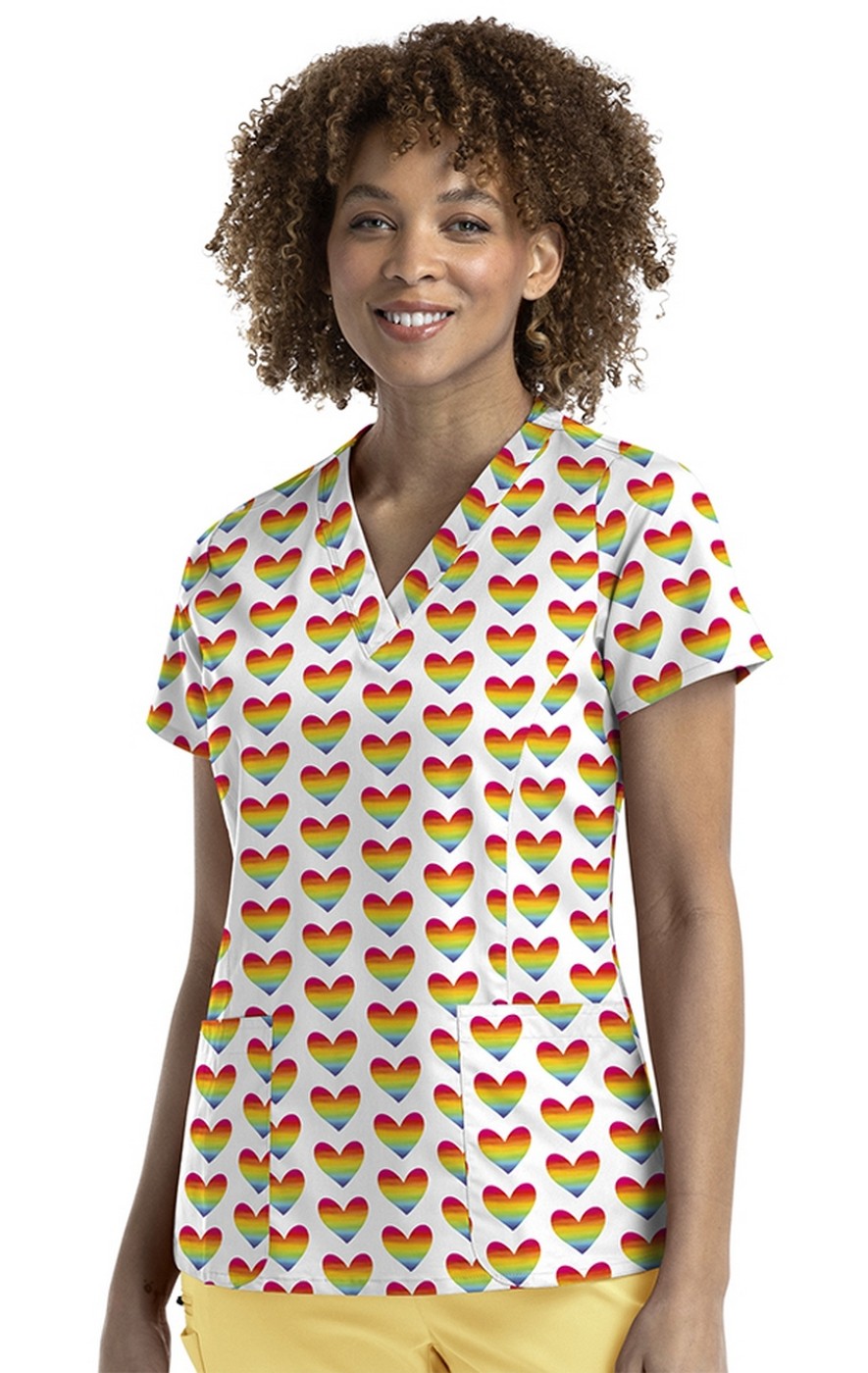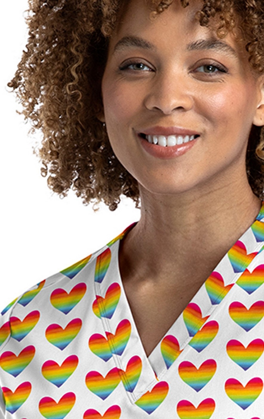 9810 Maevn Women's Printed V-Neck Top - Peace Love and Rainbows