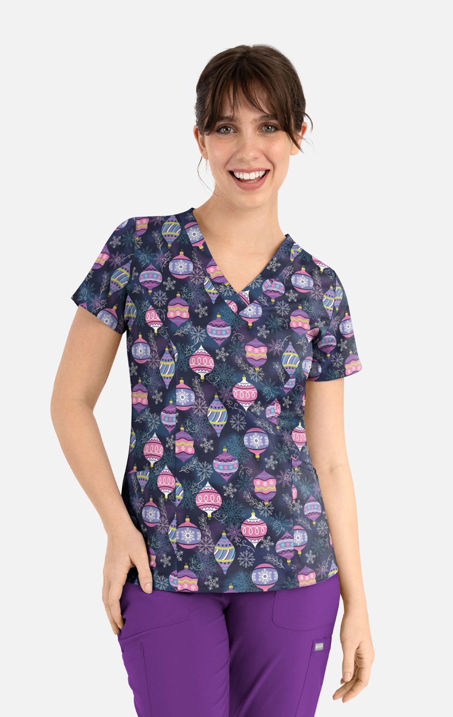 1797 Maevn Curved V-Neck Print Top - Frosted Ornaments