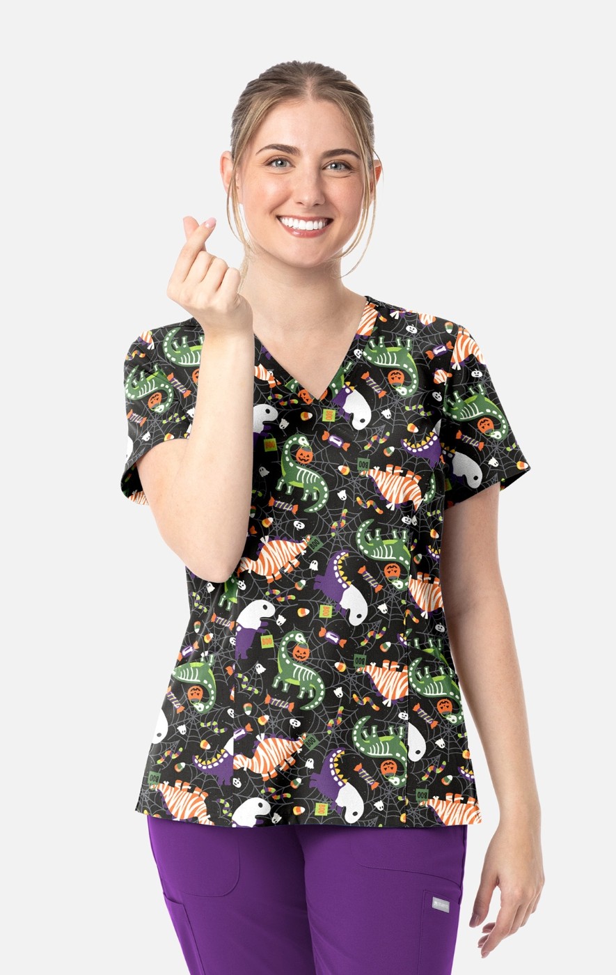 1797 Maevn Curved V-Neck Print Top - Trick-a-saurus