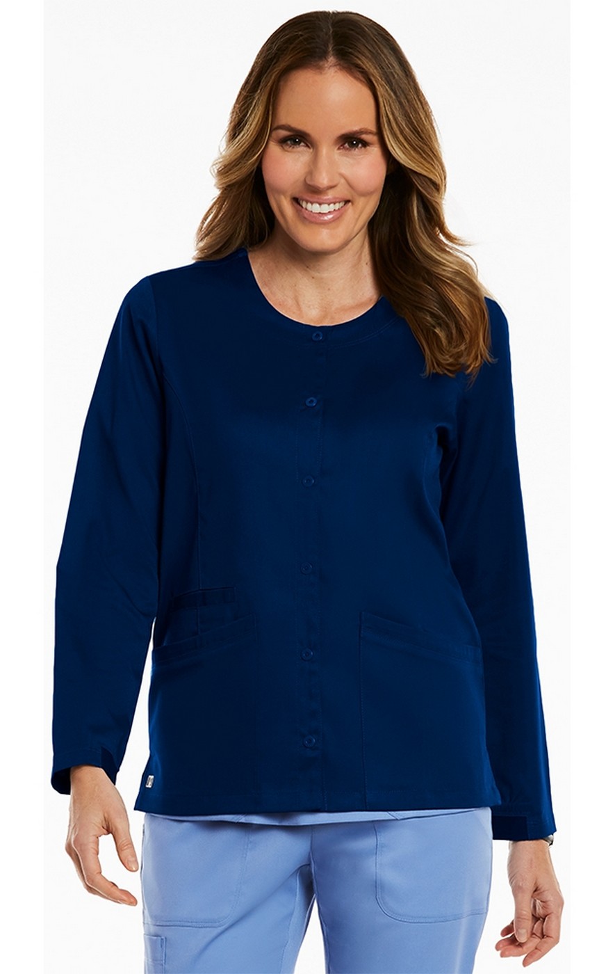 7701 Matrix Round Neck Snap Closure Jacket by Maevn