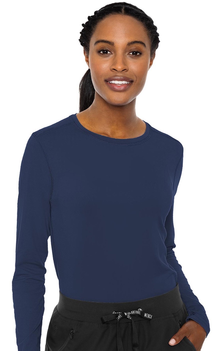 Simple comfort is the essence of this Med Couture long sleeve under-scrub tee. With figure-flattering side seam panels and a classic silhouette, it's a wardrobe staple.