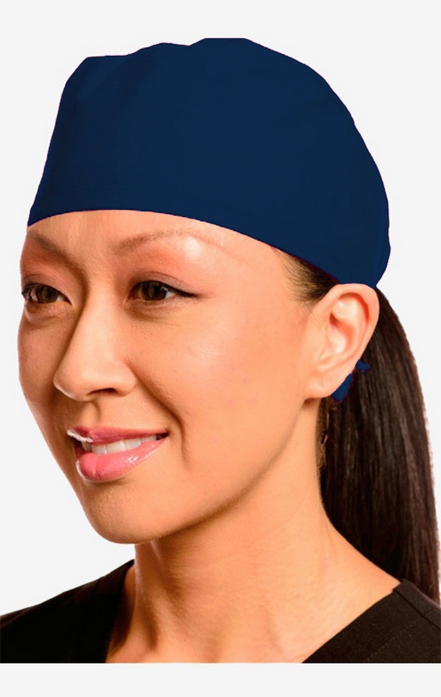 This hat is the traditional "tie back" style surgeon's cap. Available in assorted prints and solid colours.