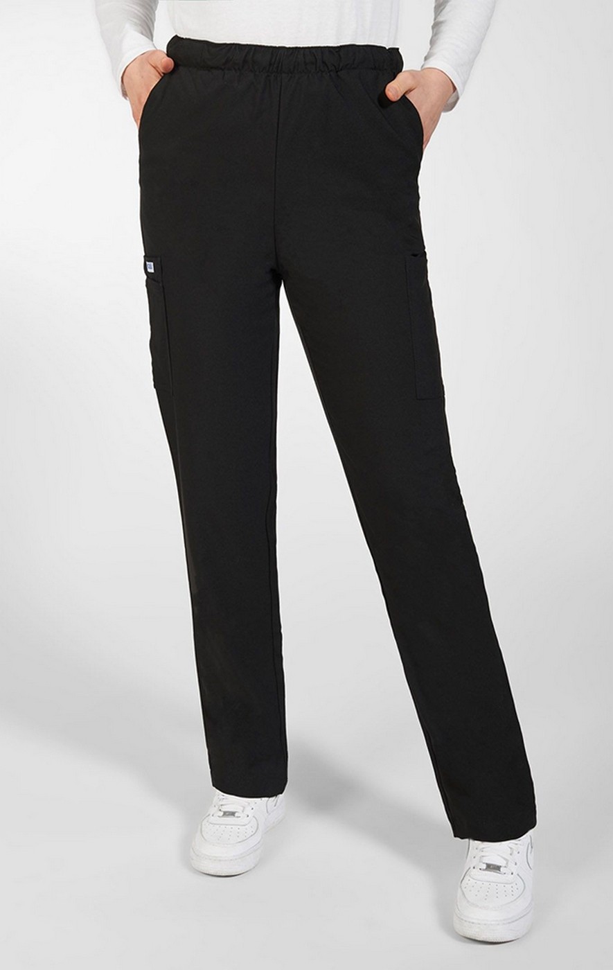 Unisex straight leg multi pocket pant features a combination drawstring-elastic waist, two side pockets, two cargo pockets and one back pocket. This pant will quickly become one of your favorite go to pieces!