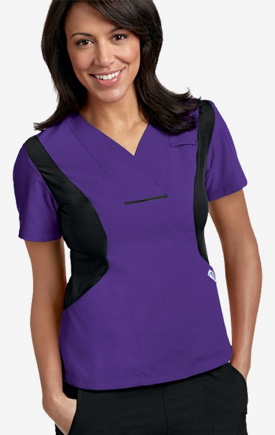 Comfortable and stylish this scrub top feels and looks amazing. Lycra stretch panels create a fantastic fit and allow for easy movement, (white top matched with white lycra), features two lower pockets and one shoulder pen pocket on left sleeve. Front and back body panels fabric 65/35 Poly/Cotton make for a completely wash and wear scrub top. Fashionable, flexible, professional. Length 26".