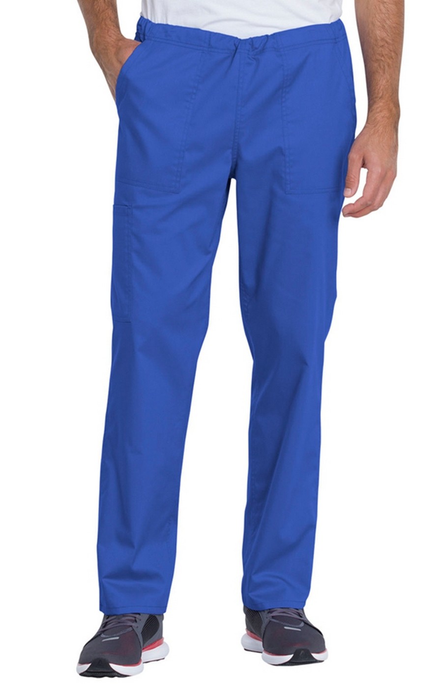 Unisex fit, natural rise pant features an adjustable drawstring with Dickies logo twill tape on the inside back waistband. Also featured is a back pocket with a stretch Galaxy Blue knit interior pocket (White knit pocket on White).