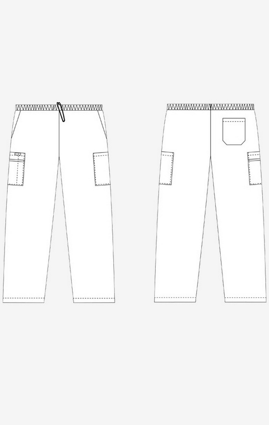 Stretch-Flex Fabric is made with 65% Poly, 32% Rayon & 3% Spandex. Unisex straight leg multi pocket pant features a combination drawstring-elastic waist, two side pockets, two cargo pockets and one back pocket. This pant will quickly become one of your favorite go to pieces!
