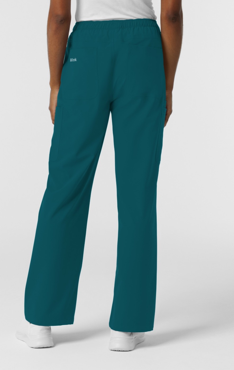 These women's scrub pants offer a blend of comfort, functionality, and modern style. Crafted from stretchy fabric containing recycled polyester, they provide a sustainable and flexible option for your workday. The design incorporates denim-inspired back yoke seams, adding a touch of casual sophistication to your professional attire. The straight leg design ensures a classic, versatile look, while the modern fit skims the body, providing a comfortable silhouette that's neither too tight nor too loose. Practicality is paramount, highlighted by a total of seven pockets. This includes two spacious cargo pockets, perfect for larger items, and one dedicated tool pocket. Two front slash pockets offer quick access to essentials, and two back pockets provide additional storage. These pants are designed to help you efficiently manage your daily notes and supplies, ensuring you remain organized and prepared throughout your shift. This item is part of the Nurtür collection, made up of durable, multi-functional pieces that offer a professional appearance while meeting the complex demands of your healthcare work.