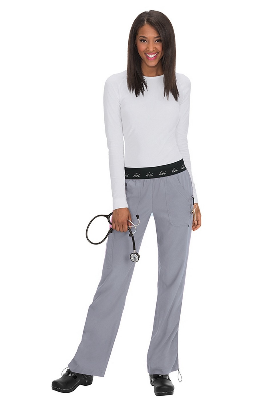 koi Lite's easy wash and wear performance stretch pants with comfy wide elastic waistband.