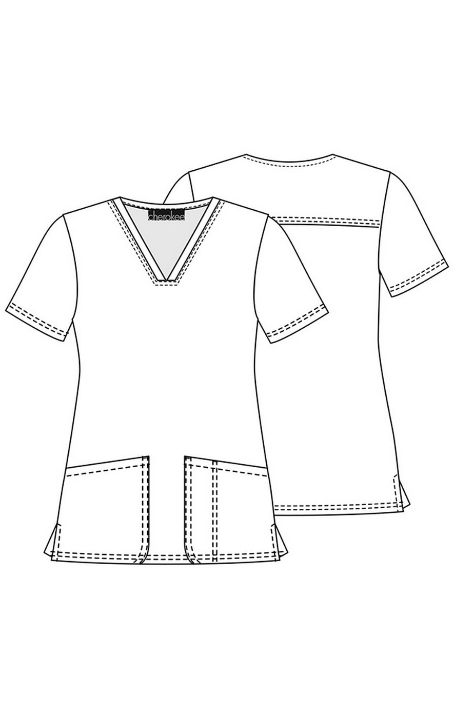 A Modern Classic fit V-neck top features two patch pockets, pencil stitch, and side vents for ease of movement. Center back length: 26"