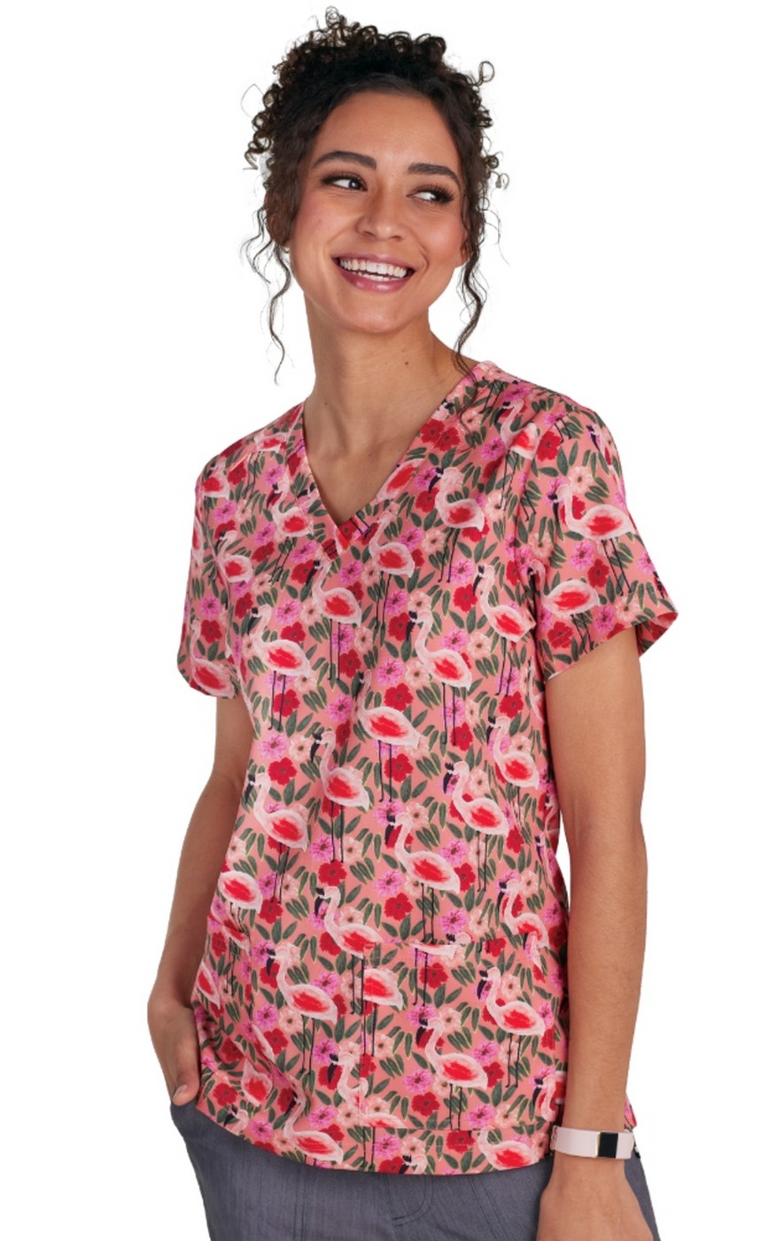 1122PRA koi Artist Series Limited Edition Rosalie Top - Flamingo and Flowers