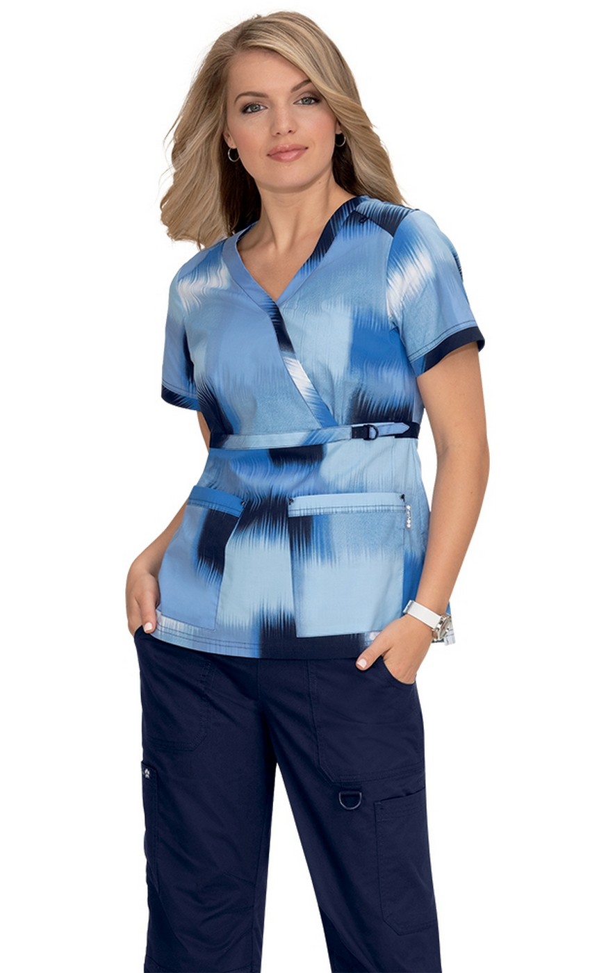 *FINAL SALE 289PR koi Stretch Luna Top Print: Ikat Patch