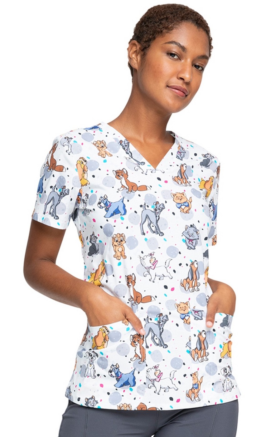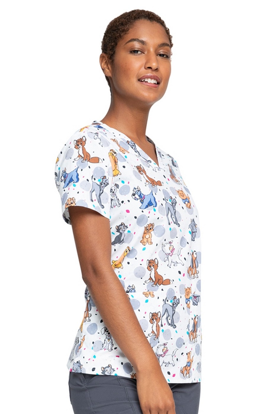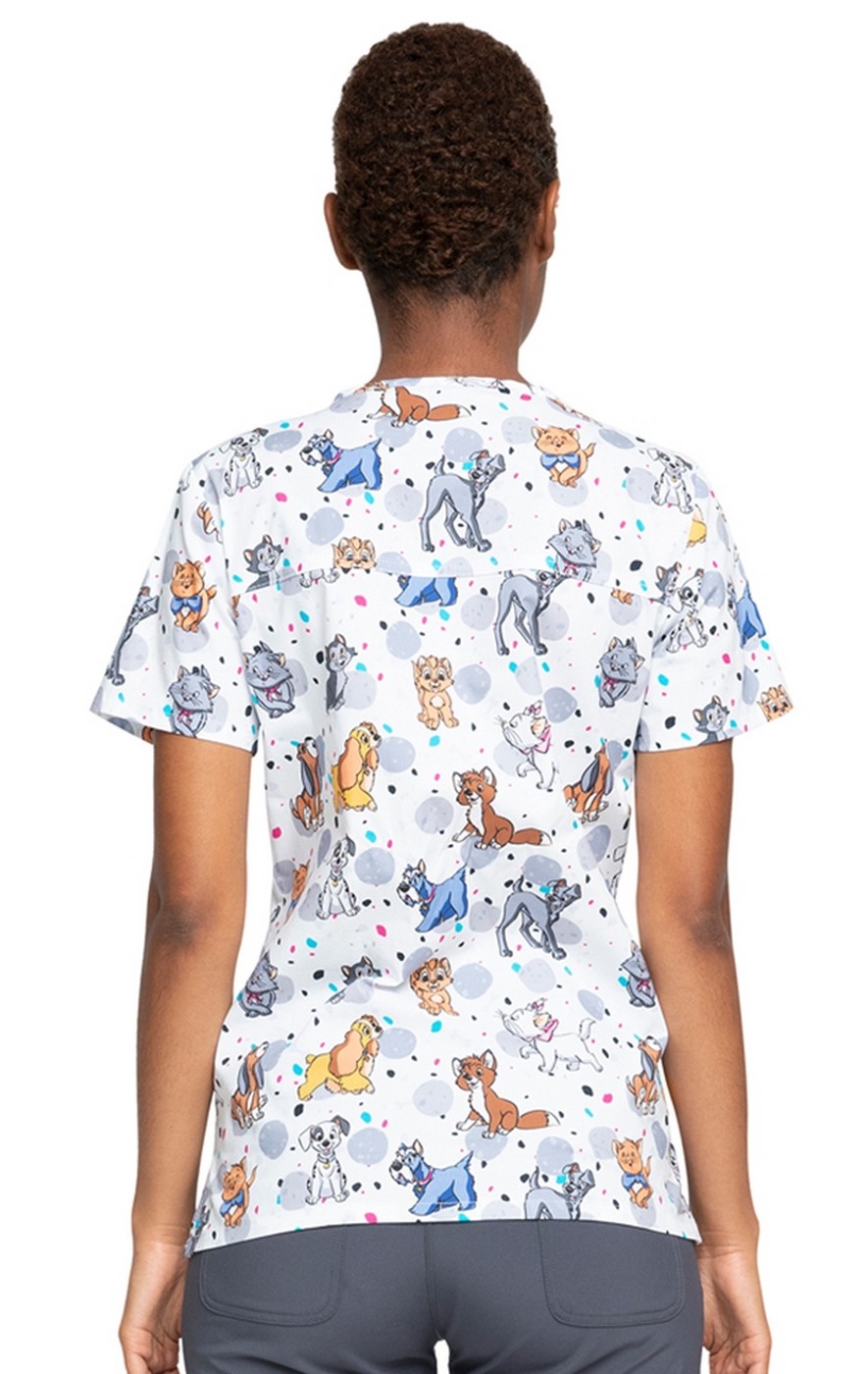 *FINAL SALE TF738 LACD - Cherokee Licensed Tooniforms V-Neck Top in Cats And Dogs