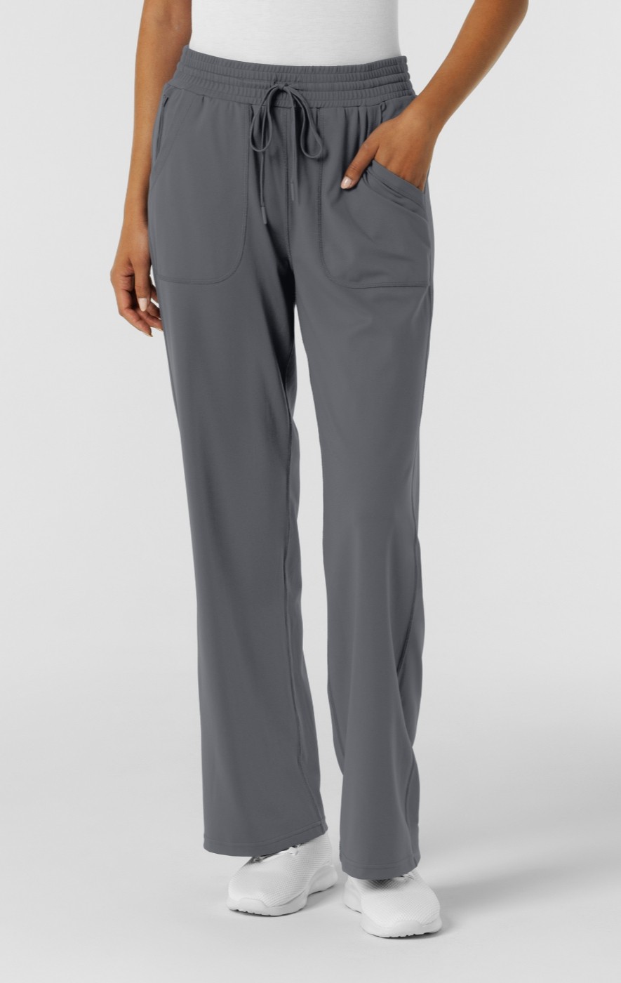 These women's scrub pants have a comfortable build crafted from a highly stretchy knit material that includes recycled materials. These pants are both gentle on the planet and incredibly comfortable against your skin. You can move freely and confidently, knowing your attire is both eco-conscious and exceptionally comfortable. The easy, wide-leg design offers a flattering and modern silhouette while providing unrestricted movement throughout your busy shift. The wide mid-rise waistband ensure a secure and supportive fit that won't dig or bind. But comfort doesn't mean sacrificing functionality. These scrub pants are loaded with pockets to keep you organized and prepared. A secure side Pocket Mate zip pocket provides safe storage for valuables and essentials, ensuring peace of mind as you navigate your workday. With their combination of exceptional comfort, thoughtful design, and sustainable materials, these scrub pants redefine what it means to wear scrubs.