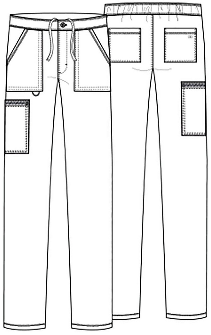 This Men's Modern fit natural rise pant has a waistband with an interior elastic and drawstring plus a zip fly with button closure. There are five pockets in total: two front pockets, one zip cargo pocket and two back patch pockets. The pant also features a bungee ID badge loop on the front right pocket.