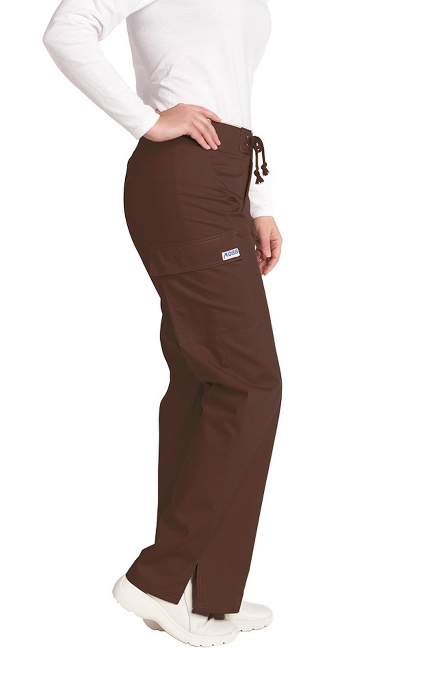 This scrub pant is great for those looking for something a little more fashion forward than the traditional scrub pant. No elastic or drawstring this pant features a decorative lace up, low rise waist and flared bottom. Cargo pocket with flap. Inseam: Tall 36".