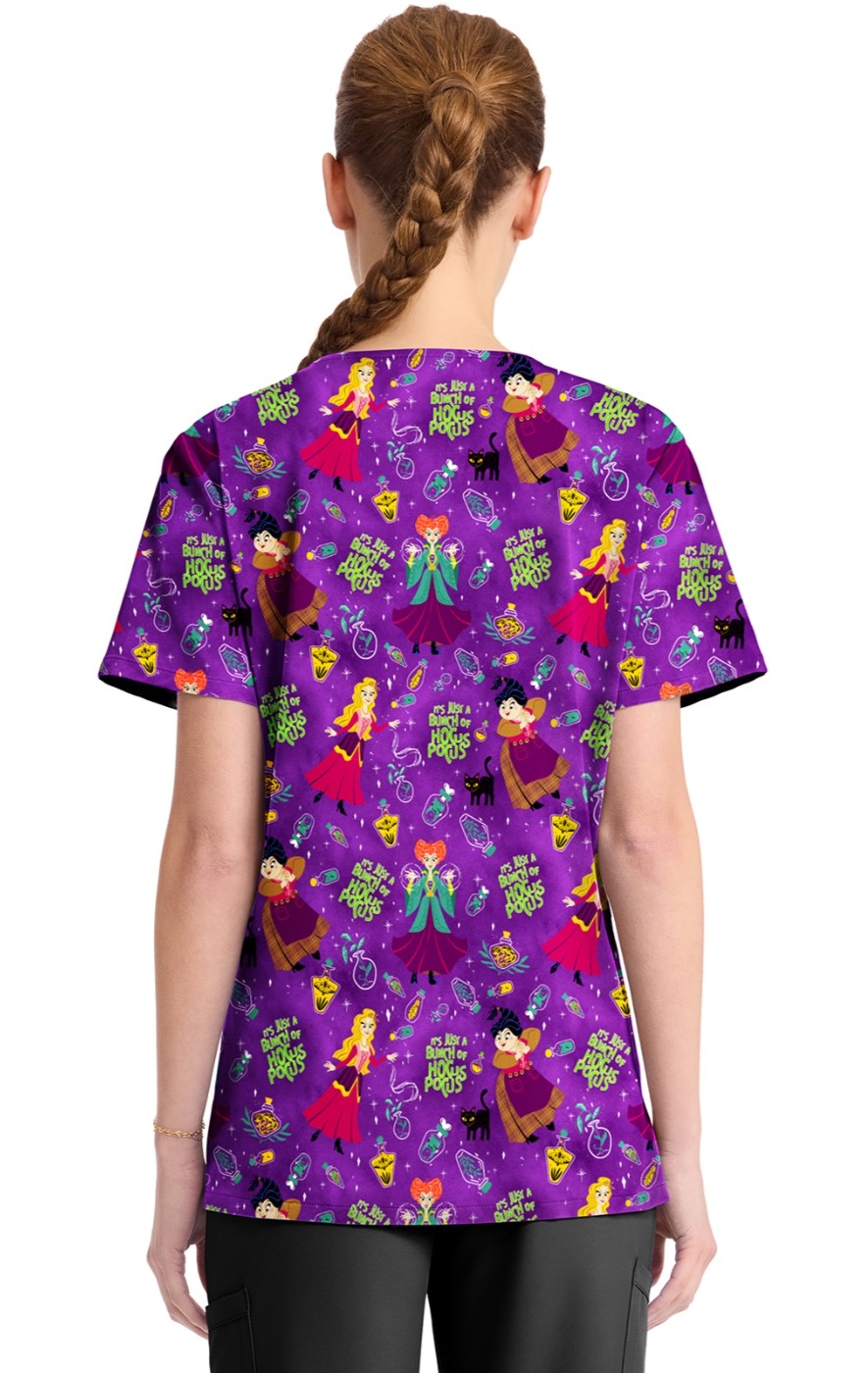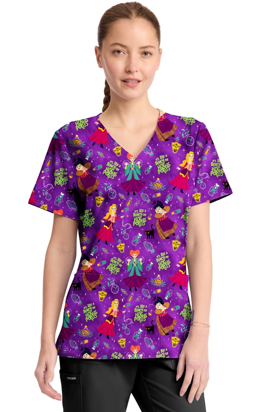 TF794 Tooniforms 2 Pocket V-Neck Print Top by Cherokee - Bunch Of Hocus Pocus